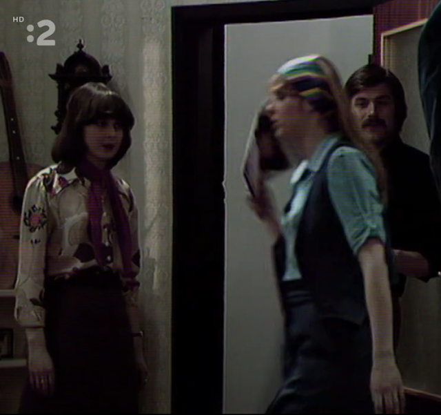 Part Two of czechoslovakian movie Koncert bez ruzi from 1977, another beautiful woman appears with the same denim vest and skirt in the same movie. Maybe the jeans clothes were part of a studio outfit and not belonging to one of the actresses. The name of this actress is Zdena Studenkova.