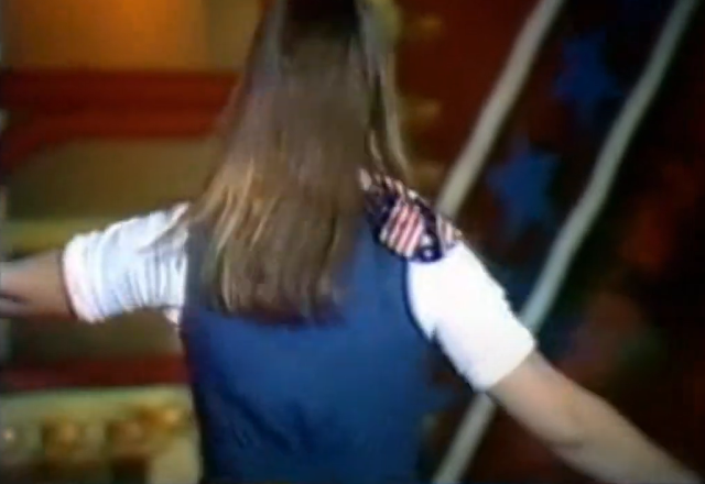 Polish singer Lucyna Owsińska on Polish TV 1977, wearing a blue jean vest. She appears together with Polish group Primo Voto, including another woman with denim vest (she may be Grażyna Piechnat or Ewa Cichocka).