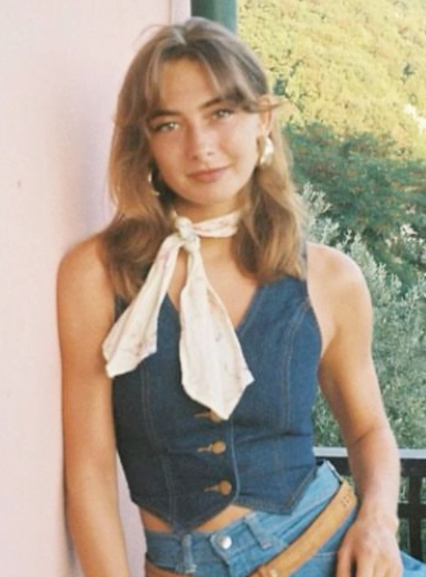 Italian actress Elsa Martinelli with denim vest and blue jeans in the 1970s. Found in the WWW