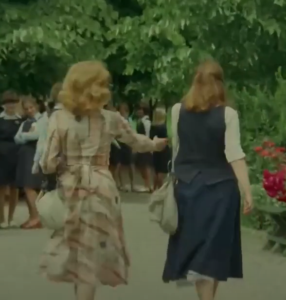 I think, I've spotted another two woman with denim vests later in the movie. One is an extra waiting at a bus stop. I'm not sure about this, but it can also be the main actress again, hiding behind large glasses.