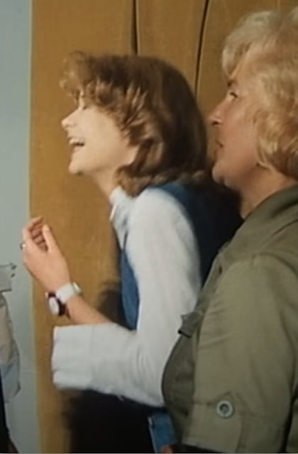 Above is one of the supporting actresses, cute Ivana Andrlová playing the daughter of a police man. And in the part of the episode, where she and her friend observe some bad rock musicians, she wears a denim vest.